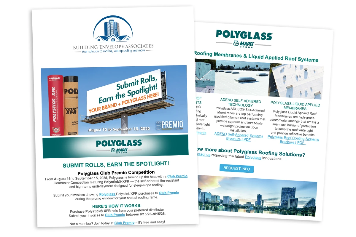 From August 15 to September 15, 2025, Polyglass is turning up the heat with a Club Premio Contractor Competition featuring Polystick® XFR. Read the full newsletter to learn more details.