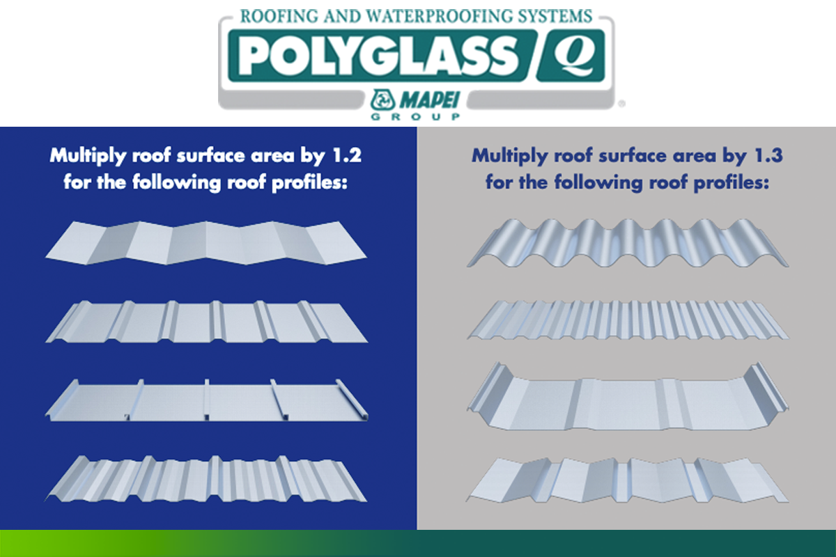 Polyglass simplifies how to calculate the amount of liquid roof coating required for your project, by multiplying the roof’s surface area by either 1.2 or 1.3 — depending on the specific roof profile.